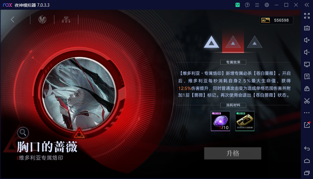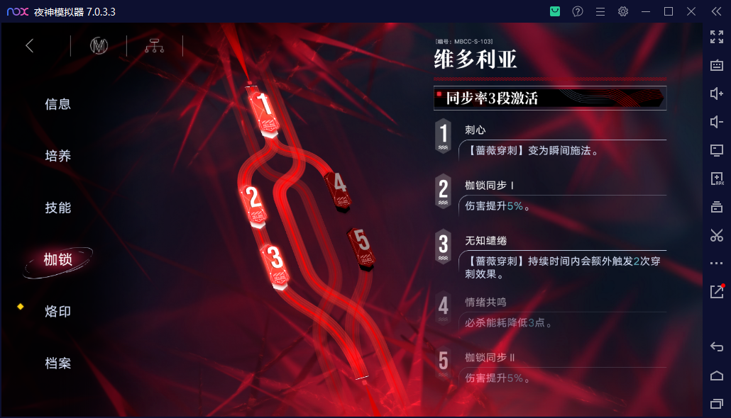 下面是我的维多利亚各项数据,伤害加成:特性5%,枷锁5%,开技能后10%。不外加其他因素一共20%增伤,所以耗血33.3s结束(具体算法有兴趣可以自己尝试),与截图34s相符。
