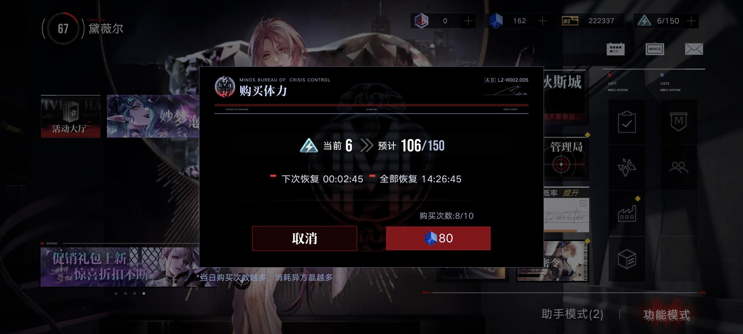 半天没登录,更新完上去一看,0体力。基建收菜也是0体力。