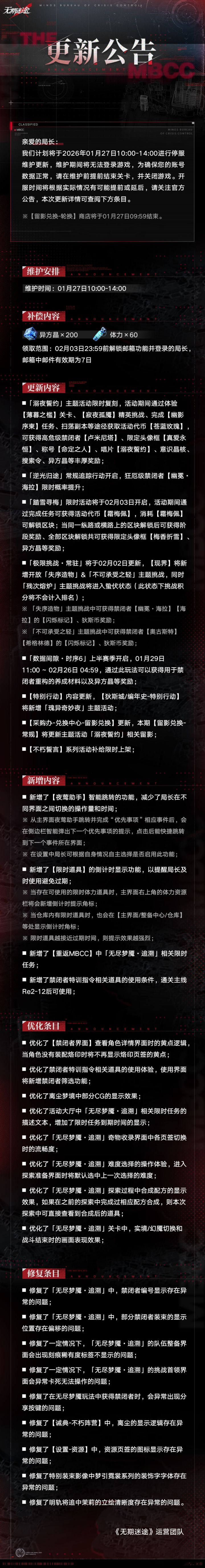 【公告】丨01月27日停服维护更新公告