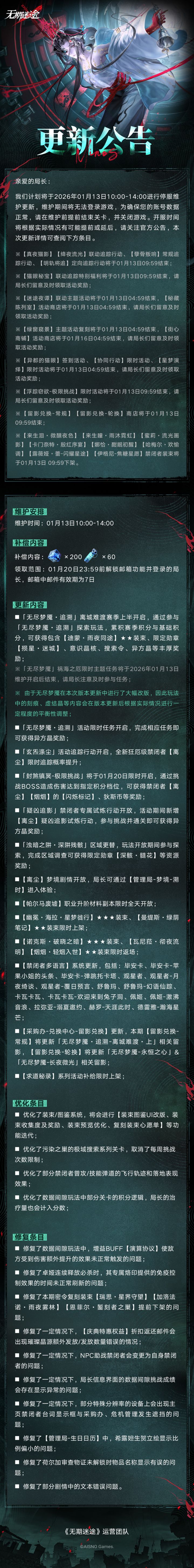 【公告】丨01月13日停服维护更新公告