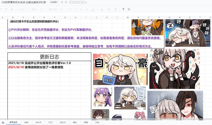 时间有限,暂时只展示“前锋”,全职业以及角色评价可以在“完整版”中查看评分顺序:PVE刷图、PVE高难、PVP、培养优先级