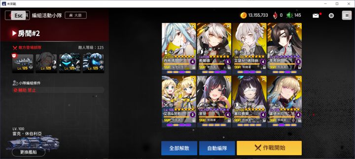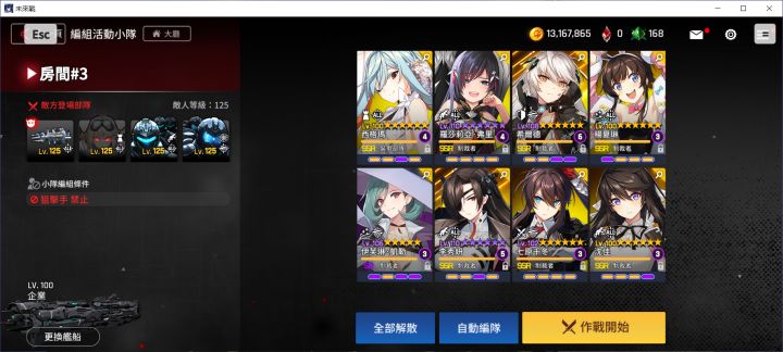 女仆活动高难配队,半自动配对如图,前面自动到下了女仆狙,然后开手动,等对面睡眠你后排后下晓琳和空狙,自动完事儿。装备方面,西格玛,杨夏林CD套,红眼攻速套,老师傅和十字奶随意,三个狙击就是攻击爆伤和对前锋伤害,怎么疼怎么来,我相信你们肯定比我装备好😂,我差不多1分25秒打过,你们狙击输出爆炸肯定能更快