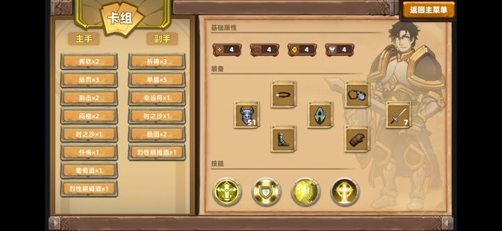 这个思路重要的点在于前期苟活,凑够自然女神套,然后通过刺击技能和盾击技能打残血,然后吸血鬼之牙收割,慢慢提血。之后就是后期慢慢攒装备。唯一重要的技能就是信仰光环和惩戒光环,套路核心技能。然后装备能凑套装就凑,凑不了就挑能增能,摸牌或者苟活的用。另外有可能的话,抽到免寒靴,不过抽不到也无所谓,反正后期不靠你自己输出打伤害。核心牌之一是酒,什么酒都行,不过没女神套、龟壳的时候多用麦酒和葡萄酒。