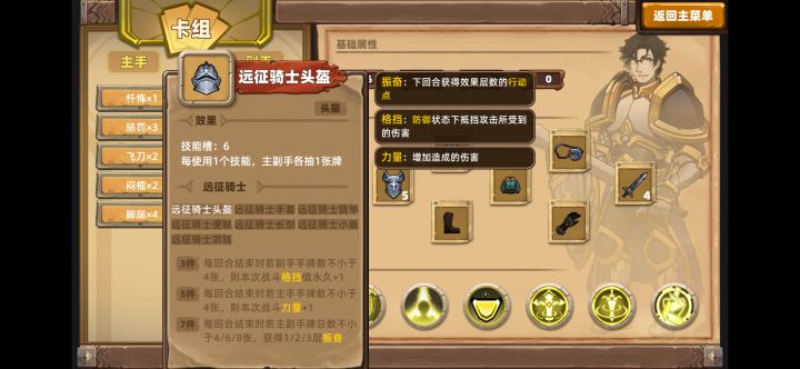 核心装备:远征骑士头盔原理跟之前讲的无限刺流一样,不过对装备的要求略高,需要RP进行占卜或熔炼,盾击技能不费行动力,远征骑士头盔发动技能就抽牌,铁骑士盾保留手牌的盾,保证副手有六张以上的卡(没有铁骑盾也可以用幸运符补卡),因为卡组已经上手的卡是不会再抽到的,所以坚守和稳固全上手后就是无限的抽盾,秒杀一切敌人。其他装备:铁骑剑加盾击的伤害加速战斗,抽5卡的龙鳞手套是个好东西,这个流派除了头盔固定