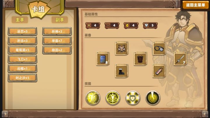 技能没关系都不用的核心装修是忍者裹足(回合内用3张牌加一)核心卡组是主手 佯攻 惩罚 葡萄酒 高度麦酒 哥布林回收装置副手 后撤步 高度卖酒 幸运符 神圣祝福主副手卡组凑够12张就行了然后进入战斗 无限过牌加能量 用神圣祝福*2 来个几次 啥都秒了