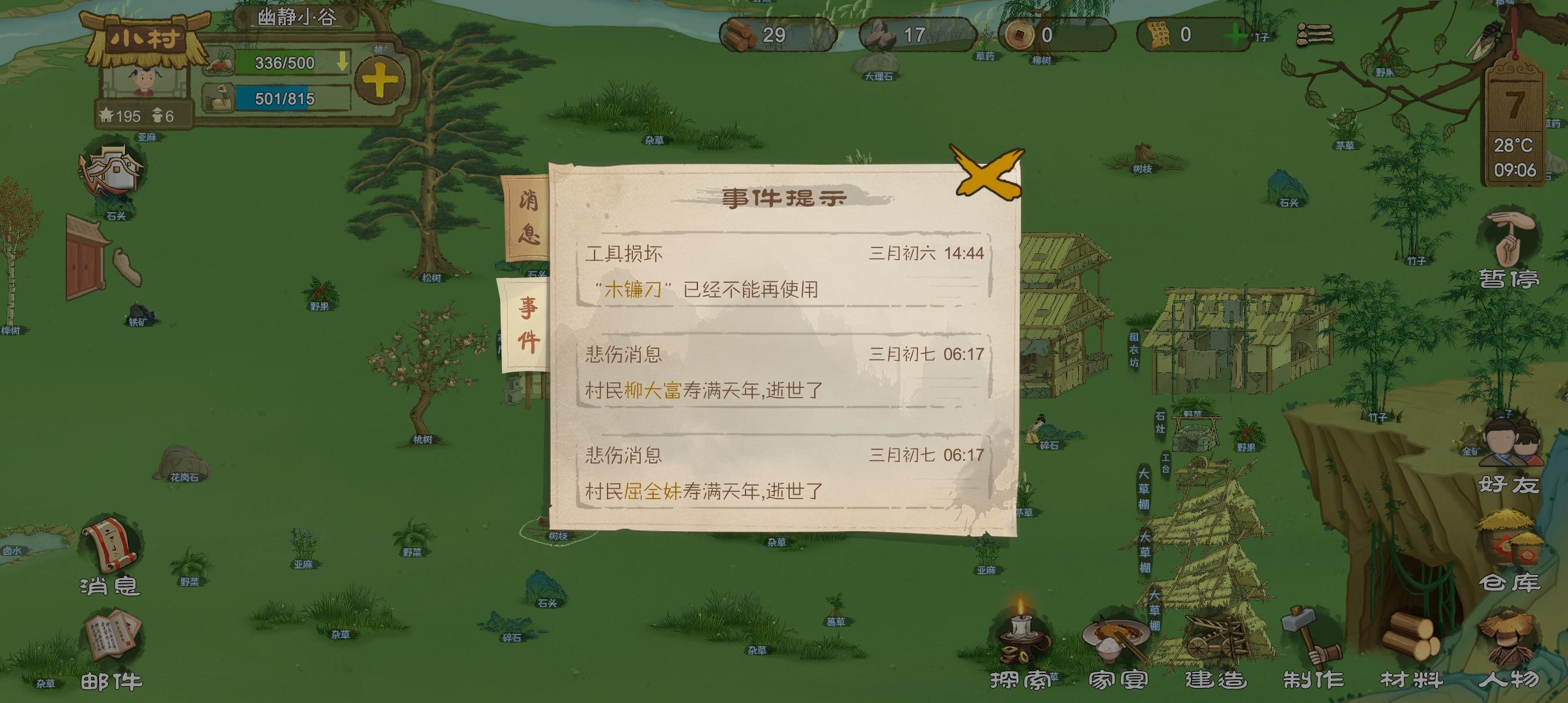游戏已经玩了2天 大大小小的问题也遇到不少 简单摸索一下还算是能解决 摸索的同时也发现了一些问题 也许这些应该算不上是问题 只是我的游戏习惯吧这其首当其冲的必然是:耐久度我很好奇添加这一奇特的元素的意义 从写实的角度 这些东西质量实在是太差了(木质 目前只玩到木质)建筑物也添加耐久(地铁 老人 手机) 从游戏角度 这一元素完全没有增加游戏难度 也没有增加娱乐性 反而倒是让我烦恼许多 完全是一个