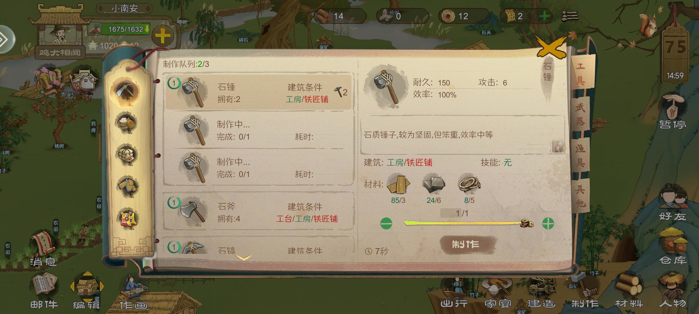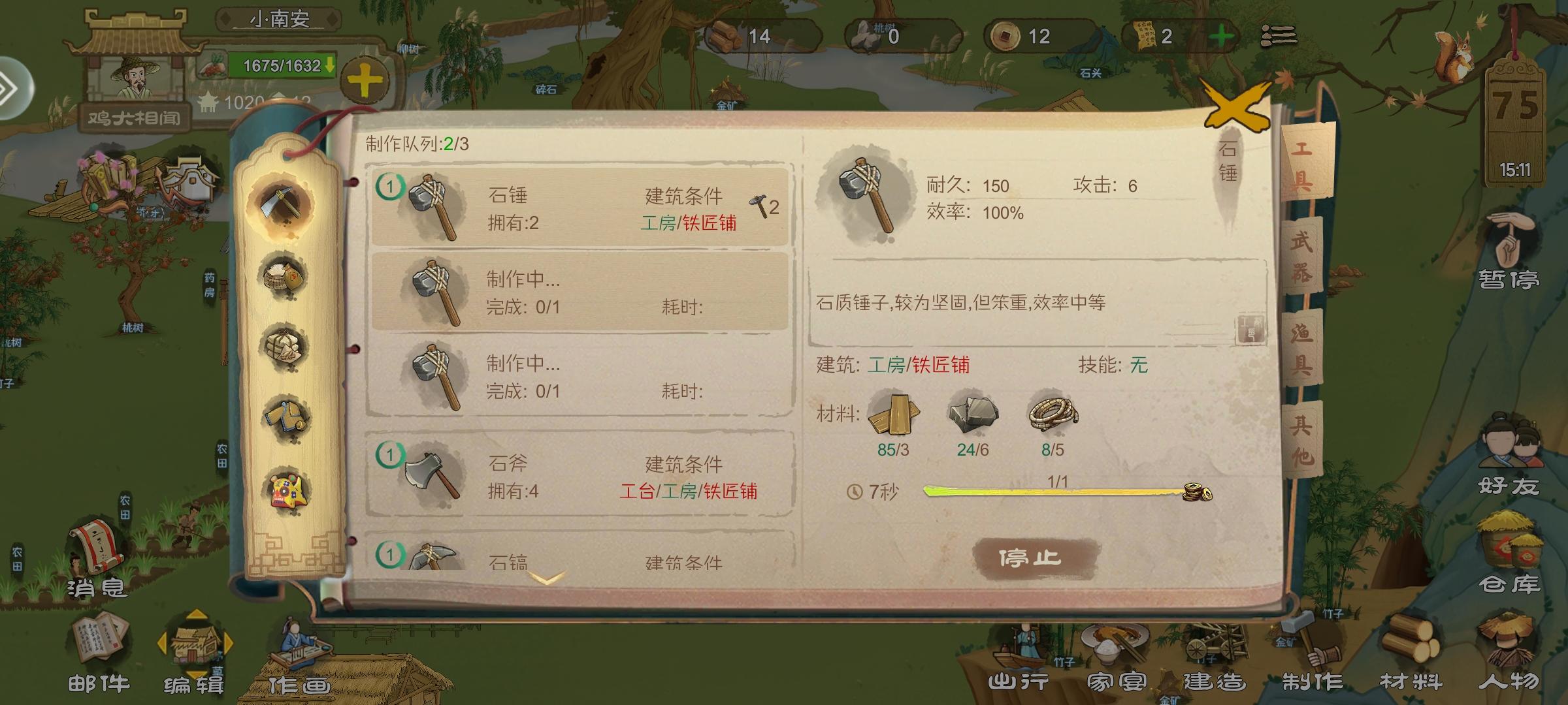 在制作工具这里卡住了。5分钟了,工具还是没造出来,中止重新做,依旧卡住了。