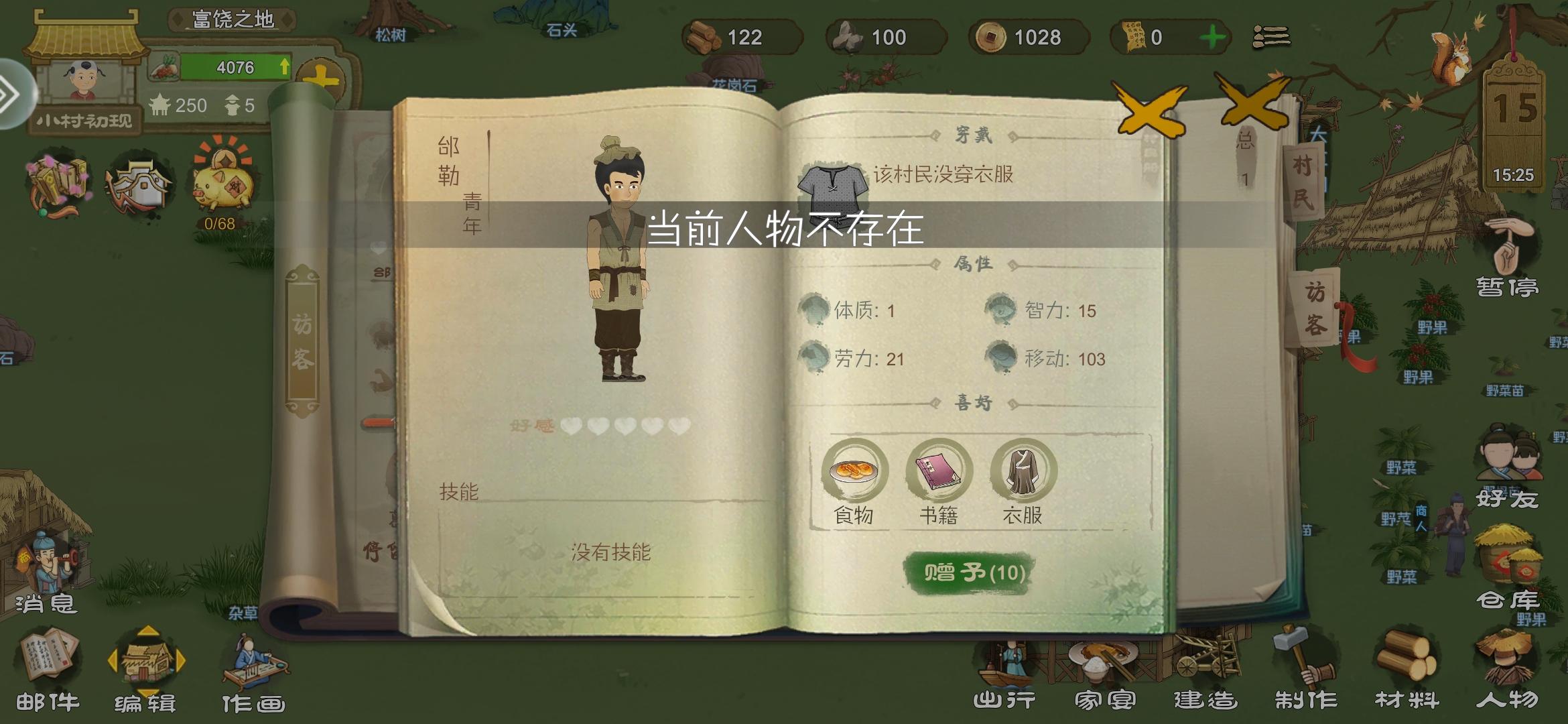 我不明白为什么访客总是不存在,还有我感觉吧升级要解锁一样东西需要的数值太多了,基本上就是在点点点,这方面真的我都快没耐心了。食物消耗太大了。其他没啥可说的。对于画风我没啥看法。就是觉得有点无聊,你不能走开只能满地图找资源而且第一次玩我居然木板资源不够开工坊,地上树枝捡完了,容错率太小太小。官方估计不清楚这意味着什么。只能重看攻略重来。自由度太过受限。食物这方面建筑这方面真的,很难赶进度。我