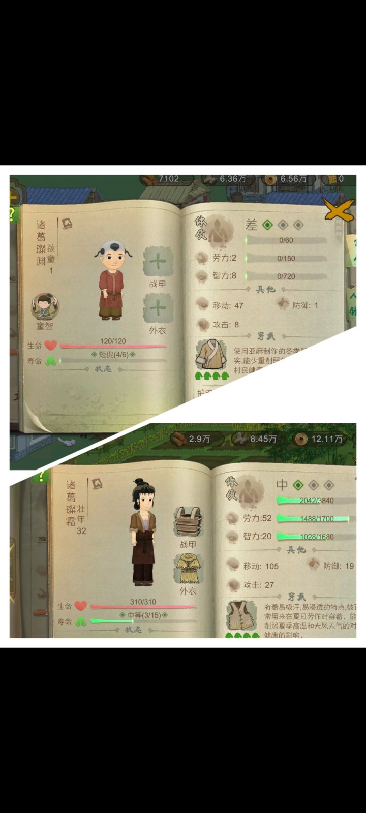 我的小人抢了义子的青梅竹马,因为老年立绘不好看,我接受不了这段恋情。老年的立绘真不行。青壮年的立绘还有几个别的,老年的立绘也太单一了。我今天有一个很喜欢的小人——雍千万,从小时候我就对他寄予了很大的希望,虽然到了壮年中年人物立绘越来越不好看,但他会的技能是最多的!我让他脱离了最多的劳动生产获得了最多的技能,并且智力也是同辈最高。他中年做了鳏夫后,我特地把他和一群适龄男女安排在一个大草棚里,