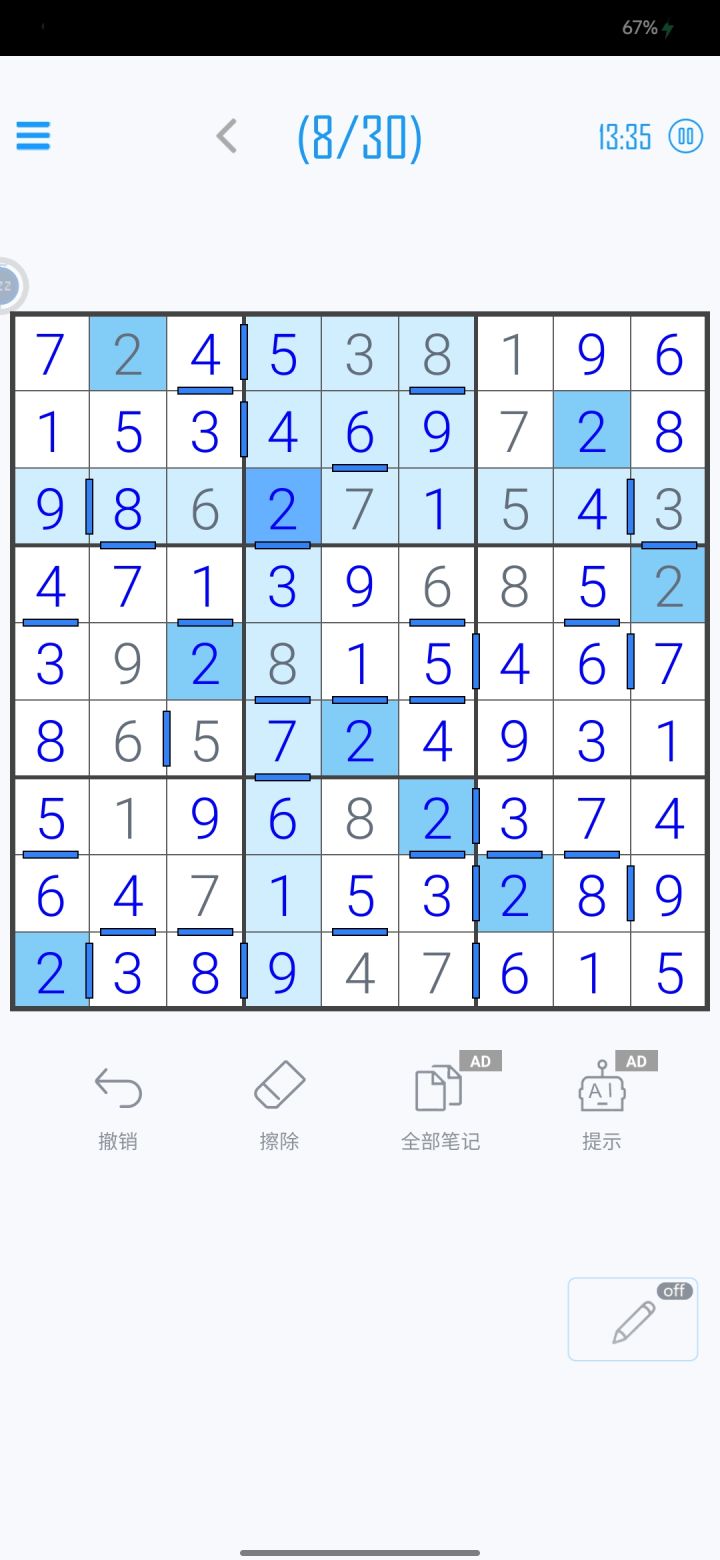 一星九宫杀手数独第二关
