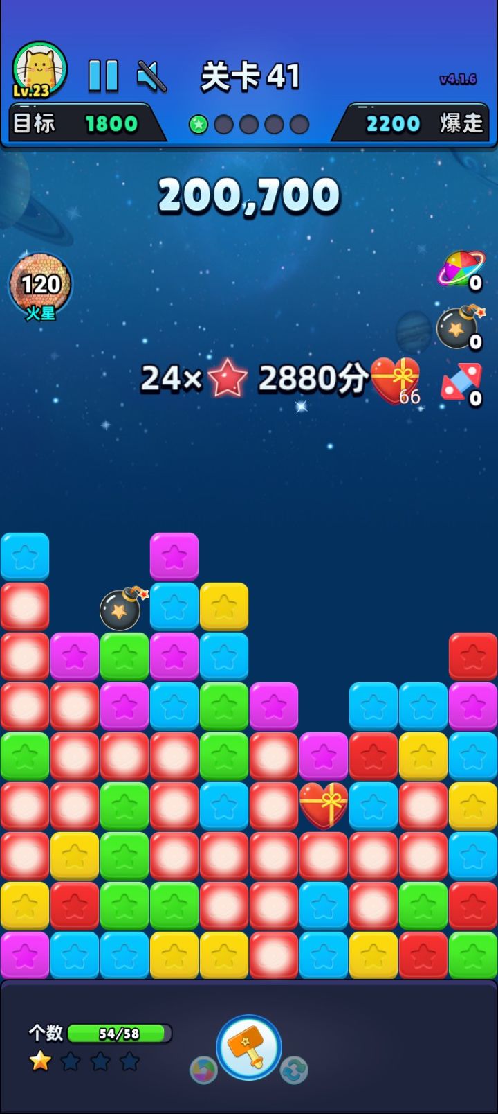 我消除了所有星星,完成第222次爆走了!!!获得2400分奖励!#单机游戏 #游戏推荐