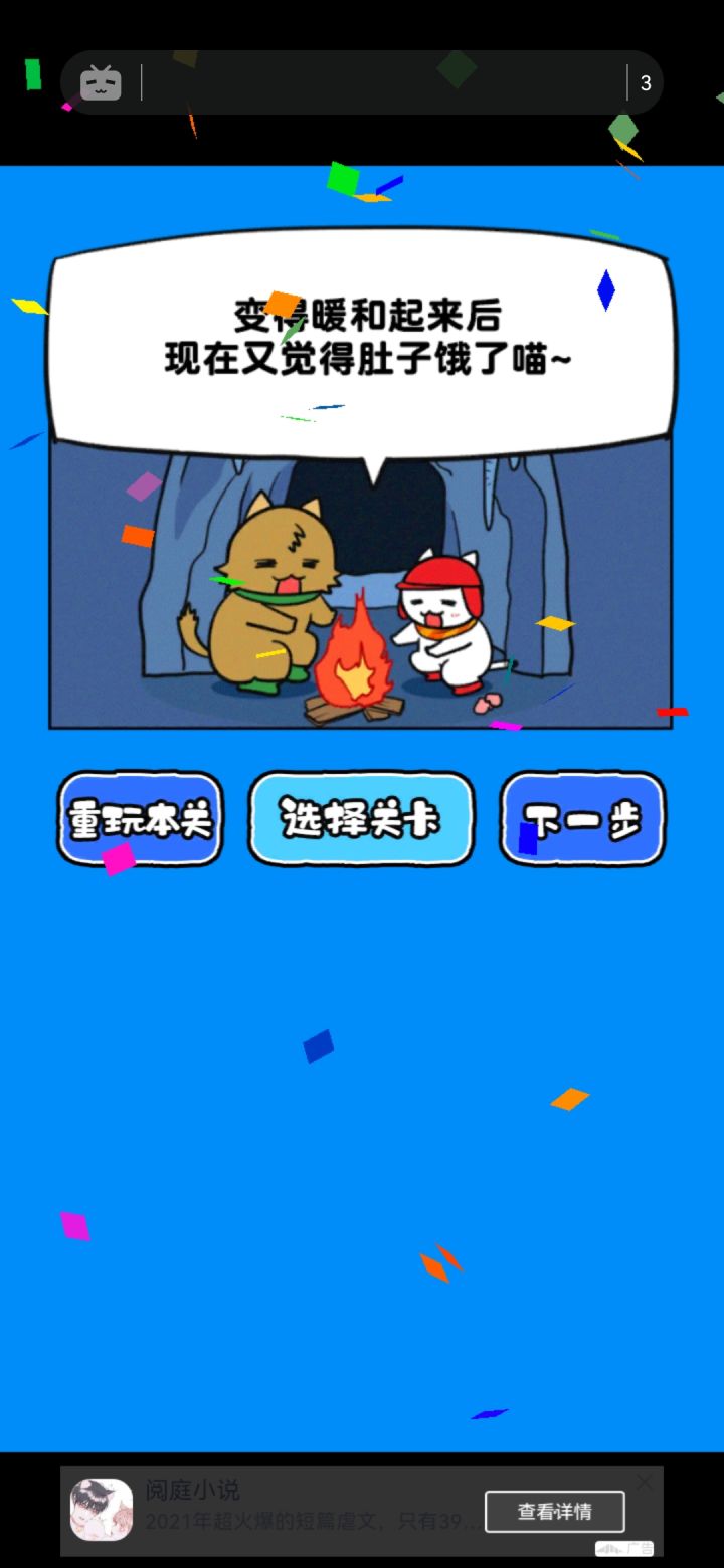 顺顺利利,打卡通关。可可爱爱大白猫🐱这次分了一个个关卡,刚开始看到冰箱边上白色纸片,点了无数遍