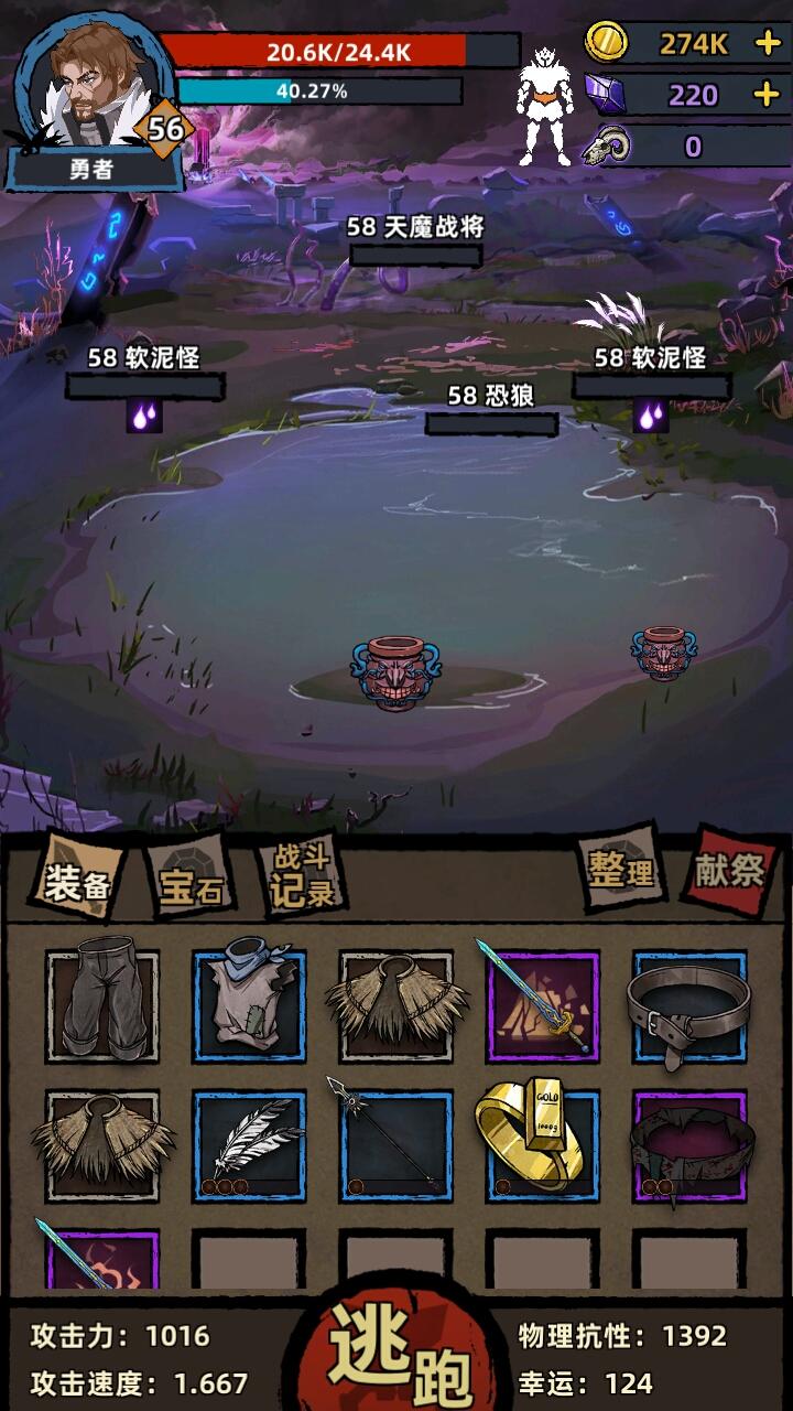 刷一些装备在背包准备看属性的时候,一点就闪退了。主要游戏重开广告buff就没有了,没有加速就很烦。