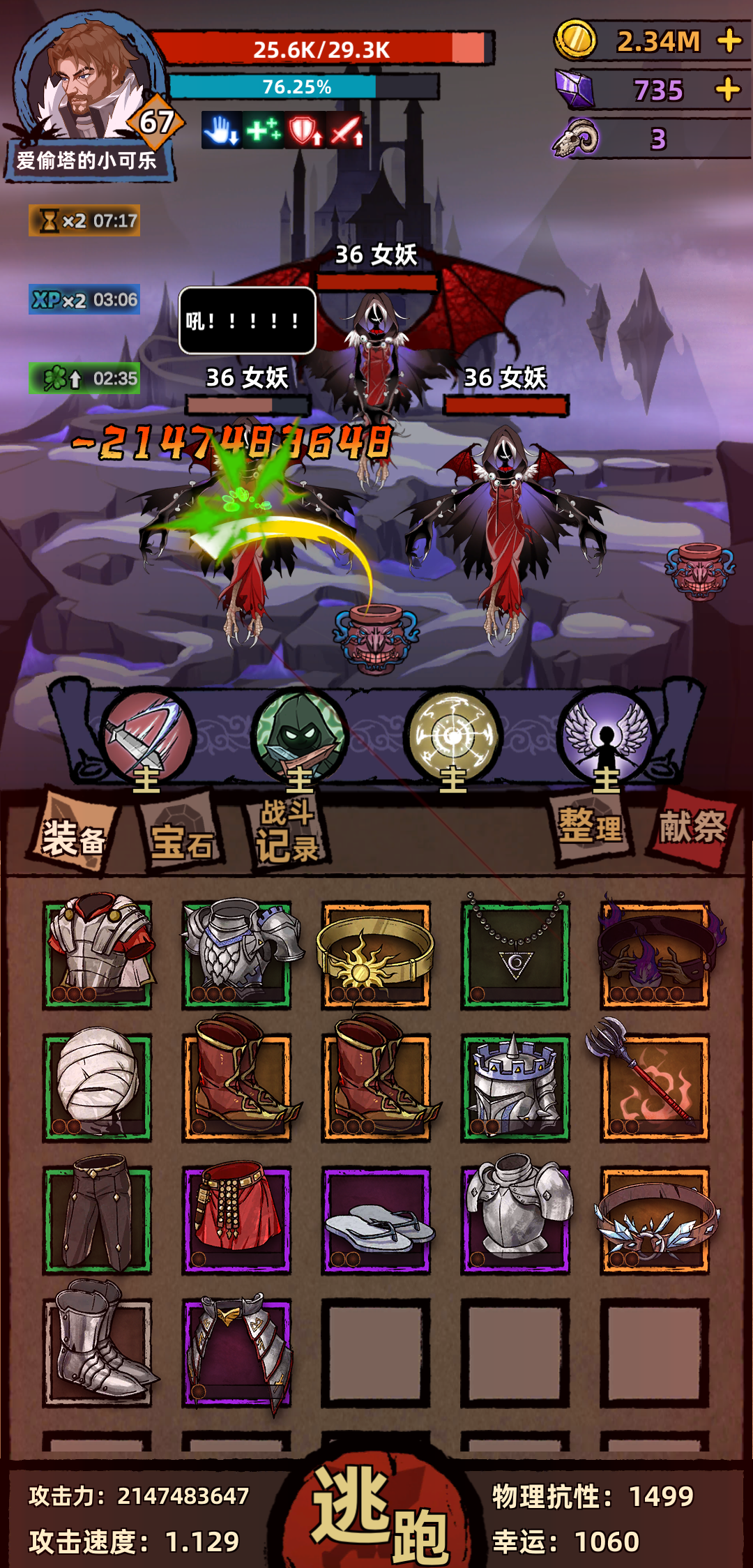 蛛母之赐套装buff 存在BUG,可以通过多次战斗无限永久叠加。第7日签到这个套装出来后就没有游戏体验了,全是秒秒秒。然后金币也卡了,买什么都显示金币不足。