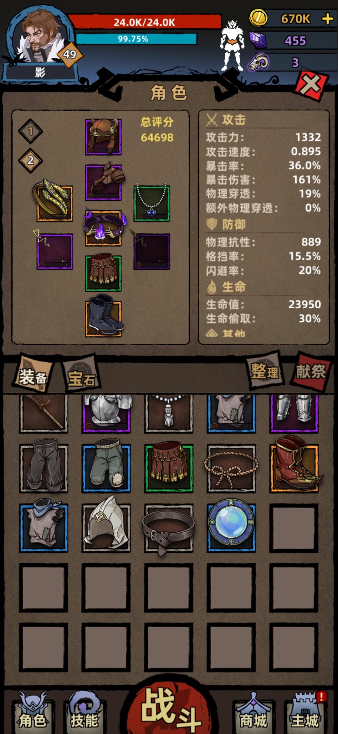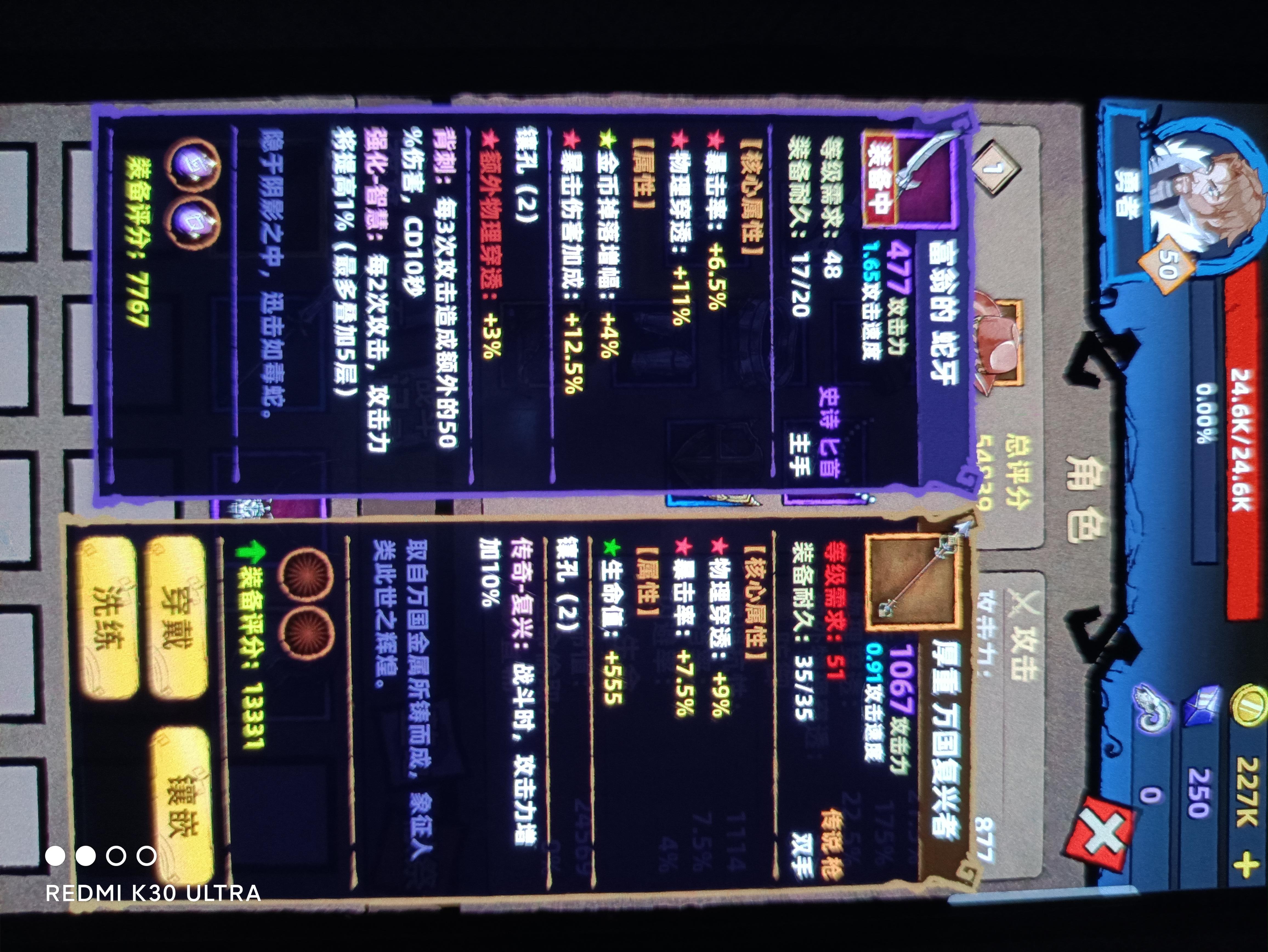 两套装备替换后战力直线上升
