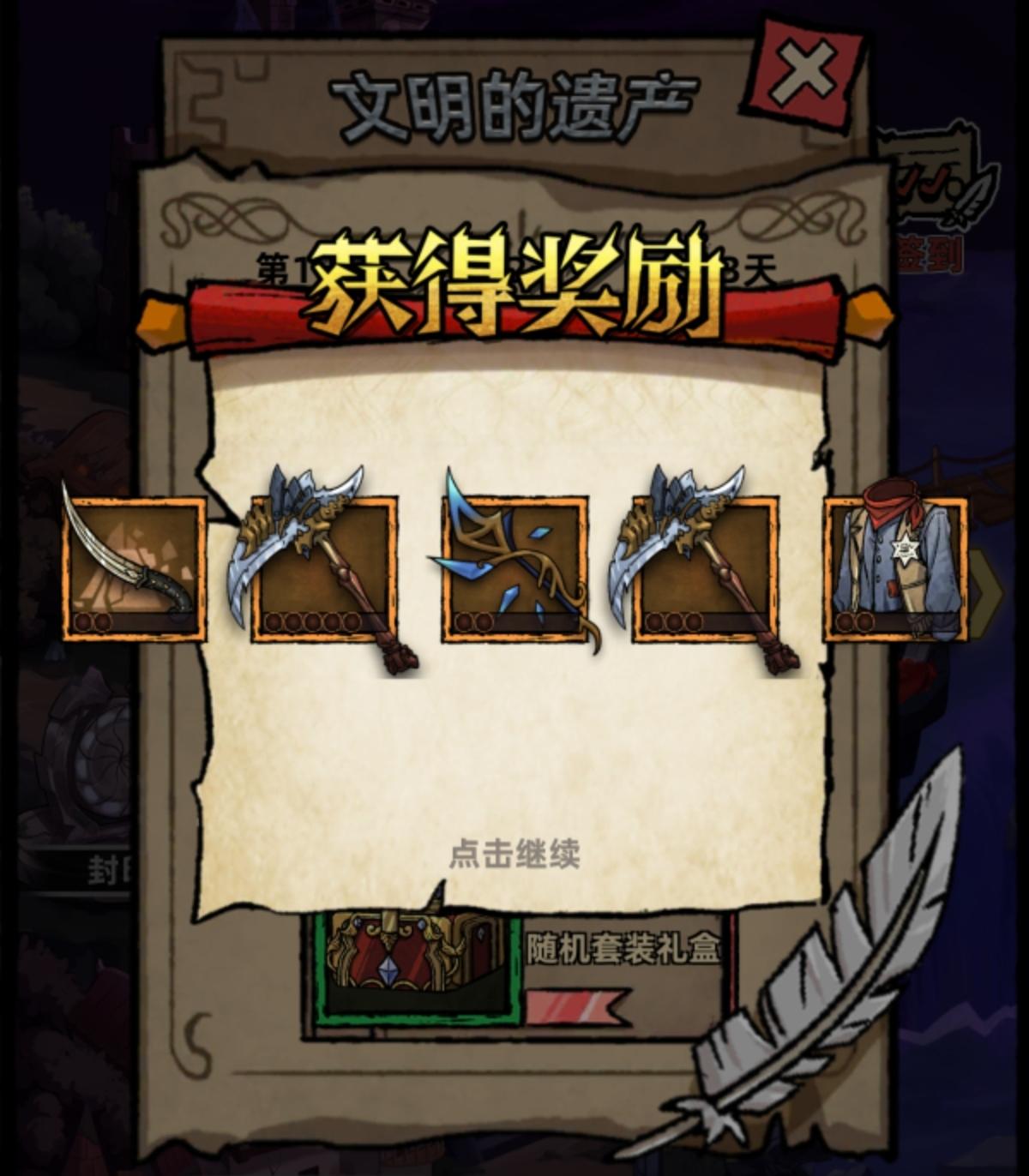 展示bug领取签到奖励,一直卡在帧动画第一帧,点一下没了,但是没领到还能继续领,然后突然就。不过确实就领取到一份礼物。修改—————————图二,献祭时发现全选的时候能选择上,并且这三个装备回占格子,不全选选择不到。