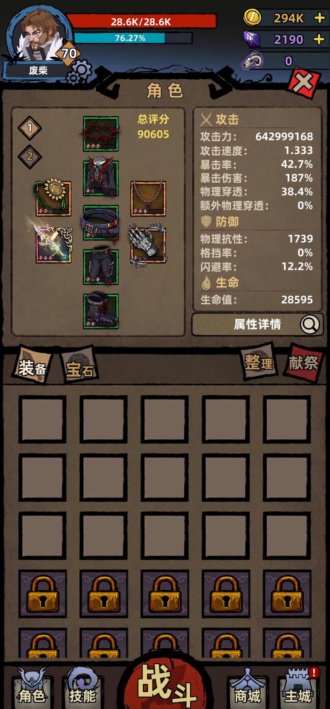 当我拿到第七天随机套装,并开出了鲜血盛宴套装时,这游戏就不正常了,首先是开始打怪后,屏幕什么都点不了,没有反应,除此之外,我身上的每一件装备都打了一个智慧宝石(攻击两次加攻击,最多叠10层),然后就是打怪一直在加攻击,退出关卡不重置的那种,如图所示,我真的没有开挂