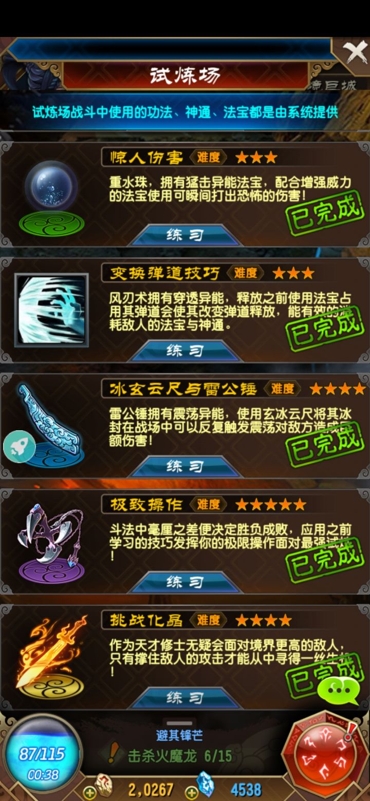 比较有难度,实在不行就去看视频攻略,完全模仿别人,精确到秒,总能过的圣树试炼 试炼木桩第一关就是让玩家练手用的,boss为一个只会使用防御神通/法宝的老头,玩家可以任意吊打。 ps:老头打一次花费6神识,跟小怪一样奖励灵气和神通经验。铁羽扇使用技巧通关技巧:前面不释放法宝。等法力攒到9点,敌人会释放飞颅伏魔链,这时拖动射阳箭和符弩到右侧弹道,场上就会有6个法宝/神通,然后释放铁羽扇打败敌人