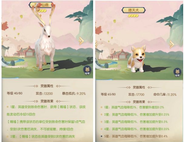 大家好,这里是小灵狐,作为封神榜的资深研究专家(毕竟小时候看电视看到不写作业,被爸妈追几条街的)。表示在电视剧里,最羡慕的就是有些出名的角色身边都带着一只专属神兽,看起来威风凛凛,比如姜子牙的四不像,黄飞虎的五色神牛,以及杨戬身边的那条傻狗。既然是封神榜背景的游戏,要是没有神兽系统,那就真的说不过去惹!——神兽系统介绍——表示我们在游戏里的神兽系统,是为各个英雄准备的。每只神兽都有自己专属