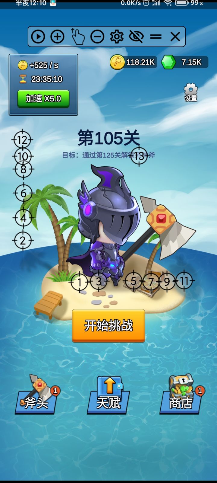 满品质一共75%的眩晕概率,感觉还不错 之前用的4终伤1吸血的旋风斧,现在换一段时间震荡斧看看