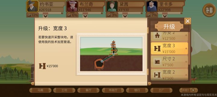 怎么升管道大小??我已经升级到管道3了,但是游戏里管道还是最初那样,每一把油都采不完,3到4个井。我愁了。。