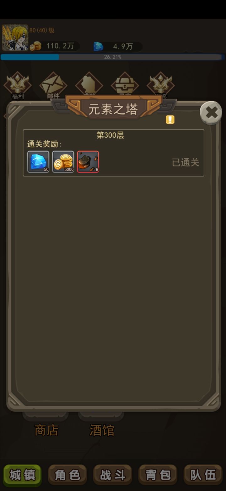 6.元素之塔★是提升挂机经验和金币获得的,通过爬塔提升,大家一定要及时打获得提升,打到最极限,有了提升继续去打,获得的符文碎片用于提升任务里符文的属性,十分重要!