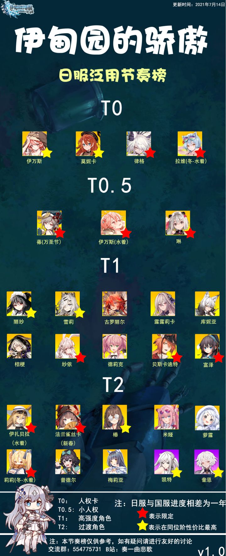 日服早期节奏榜,小魔做的,除了熊猫其它无争议(国服巡音另说)。鲨鱼现在日服还能打单体刀(确实是变少了但还能用,jjc也能用一段时间)。