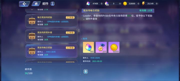 竞技场关闭前我800多名,想着慢慢打,这次开放我直接100多名,变成上个月的名次了,中间800到100的生涯奖励直接显示领取了,但我没领过😓😓
