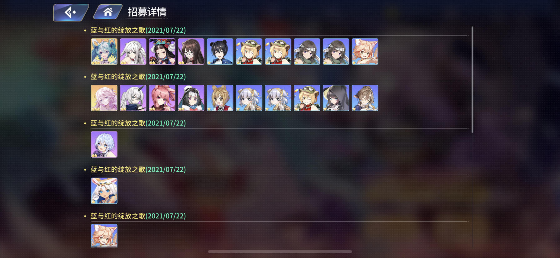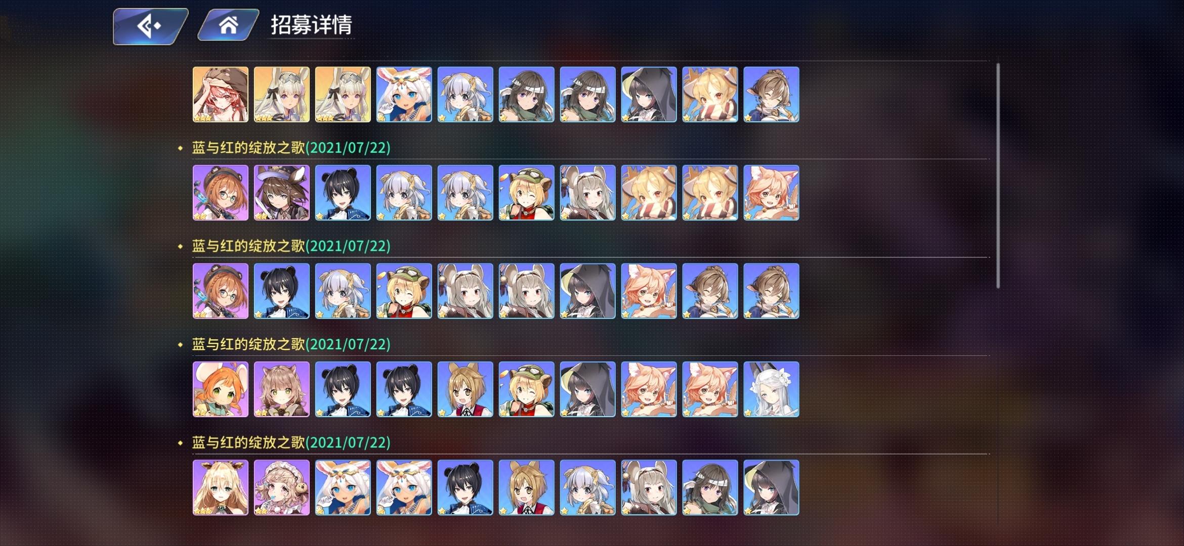 说真的,这游戏没有什么能留住玩家的,福利福利少的可怜,不氪金,平民玩家很难玩下去(欧洲血统除外啊)。就这抽空的爆率,这真是打着灯笼都找不到,联动百抽,全他么保底,一紫九蓝,而且紫还是那种垃圾,你要是水母针筒我还不说什么。大号也是,开局耳机红狼水母全有,后续又有骑士兔子,up池把骑士肝到了六星,耳机红狼四星,水母六星,以为是欧洲人了。结果不知道是不是针对,后续就在也没碰到金了,联动氪了一发648,