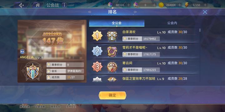 会战147名公会收人,要个能玩久一点的 公会日常活跃没有si鱼,有两天及以上不上线就送走,要求不高,公会战能打15w及以上积分,能每天上线就OK了,下面是公会qq群,要叫公会的可以加群咨询(⌒▽⌒)