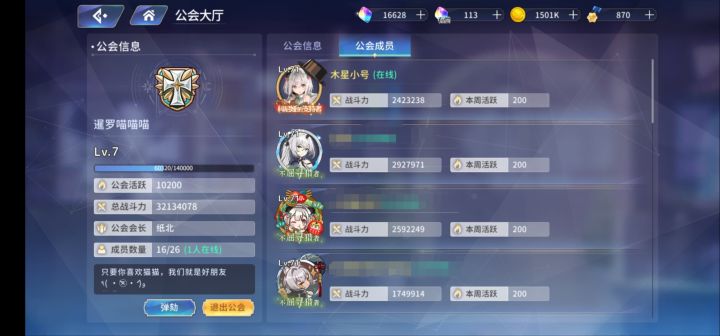 公会招人: 需要一些喜欢这个游戏,愿意长期玩下去的朋友加入,来点大佬带带我们就更好了虽然是个小破公会,但是我们有会猫暹罗——木星!来看看吗?| ू•ૅω•́)