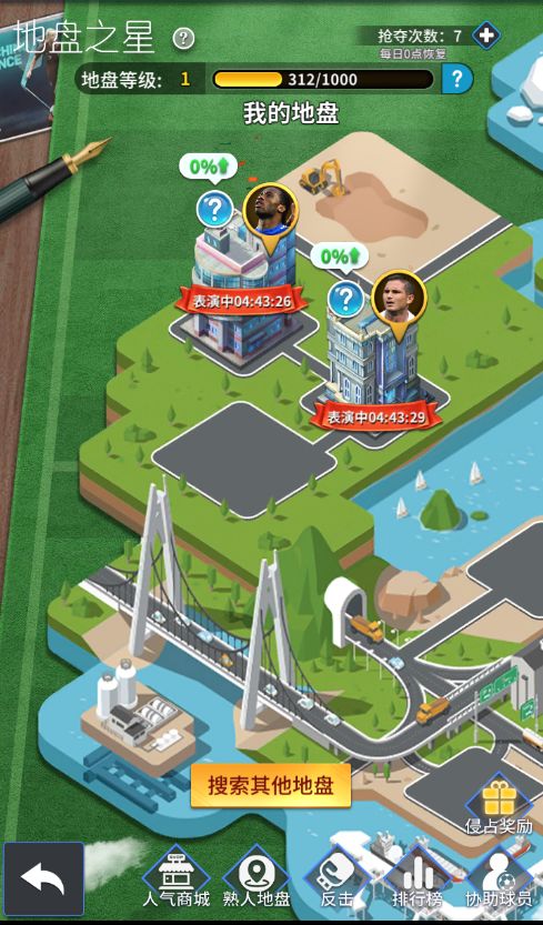 各位球星上午好,我们的游戏在昨天完成了版本更新,下面就赶快来看一下更新内容吧!地盘之星争夺专项基因 地盘之星是这次更新的主要玩法,每位玩家拥有自己的地盘,可以分配球员进行驻守,驻守8小时后进入收获状态,可收获人气值以及地盘升级经验。在进入收获状态后,有10分钟的保护时间,10分钟之后,其它玩家可以派出自己闲置的球员对该地盘进行抢夺,双方球员进行PK,如果抢夺方获胜,即可获得被抢夺方的部分人气