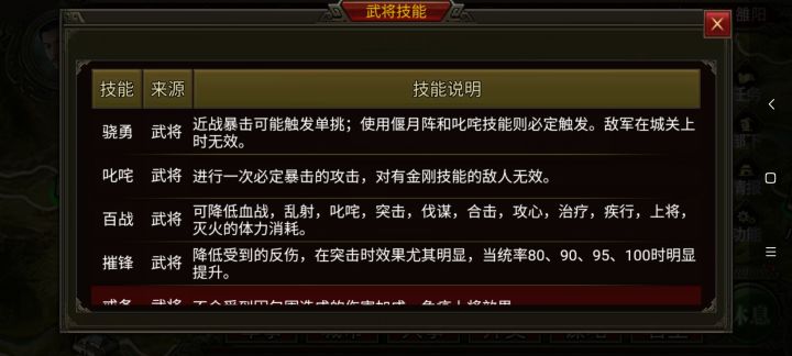 骁勇:近战暴击可能触发单挑;使用偃月阵和叱咤必定触发。敌军在城关上无效。我今天玩的时候,用张辽近战叱咤并不是每一次都能触发单挑,张飞和赵云也是。那么问题就来了:1、技能理解错误,这本来就是概率性,使用偃月阵和叱咤必定触发的是暴击?那这个[;]是干嘛的?2、出bug了。嗯……难搞……