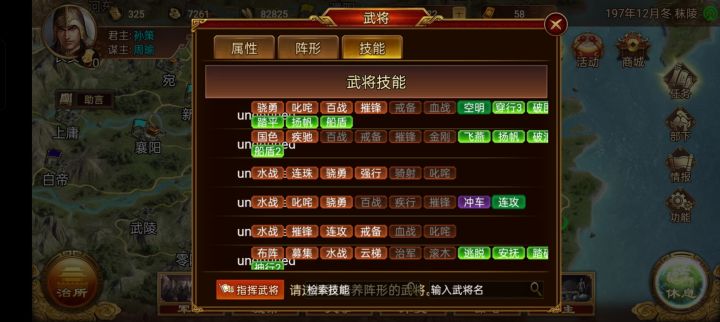 研习的时候选择阵型或者技能来挑武将的时候,武将要么不显示名字要么就成了乱码了