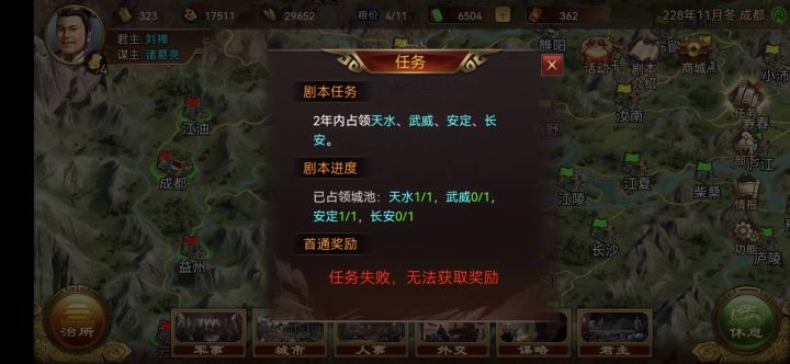 在搞笑吗?开局228年,11月我任务就失败了?还是说之前的存档不让用了?激战、街亭、刘禅开局。