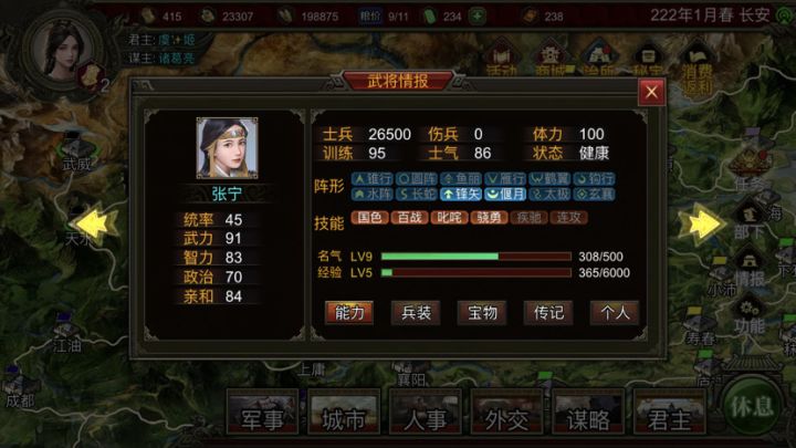 战役中增加张宁自建武将没有叱咤和和连攻这两个技能张宁毫无疑问是最适合带飞熊兵的关羽这么一个神将在战役中出场率特别低,原因都是因为技能造成的,把这么一个神将硬生生地弄成鸡肋,是群雄时代的一大败笔!当射手?没连珠、骑射、神臂!当突击?没摧锋!去单挑?没骁勇!没疾驰!(别跟我说有武器,格子这么宝贵不可能用骁勇当武器的)当军师?哪有军师技可用…毎个三国类型游戏,关羽都是神将,也是玩家最喜欢