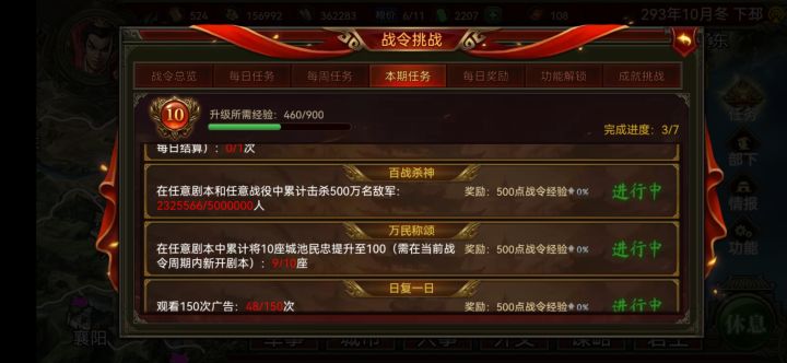 随着游戏养成的发展,道具特种兵宝物之类的越来越多,新入坑的萌新跟我们这些人比起来劣势太明显了,毫不夸张的说没有五千大洋在战役里很难获取想要的名次,我建议以注册时间为参照物,三个月,半年为一个档位,把玩家分成各个不同的战役分组,这样能调动萌新的积极性,战役也不会出现前二十全是老面孔的现象,可以给各个阶段的战役资源做相应的调整,比如说开服三个月的分成一组,三到六个月分成一组,到半年之后才会分到老玩家的