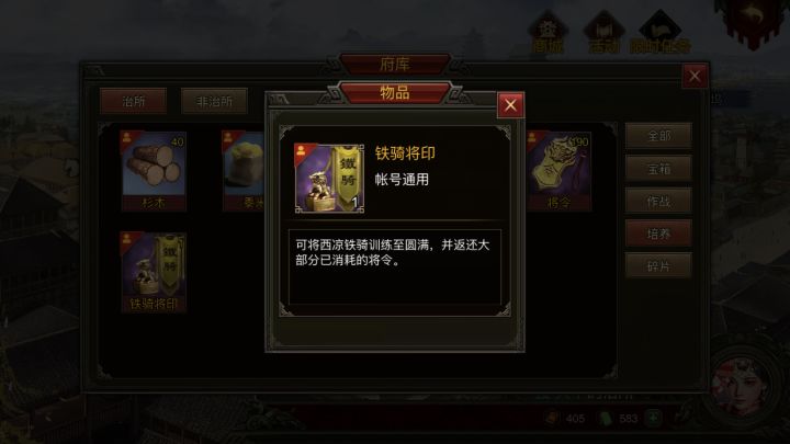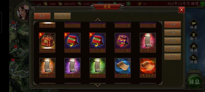 希望更新一下游戏内的府库功能,简单说就是把战役通用和单局内购买的道具分开放。东西存多了不太好找。或者出个私库可以自主选择存放一些东西,这些东西只有取出来到府库才可以使用。