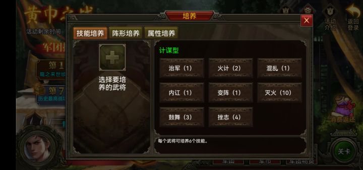 计谋,我觉得计谋有点少,而持续时间太长,往往被人一混乱就是5天,己方没有解的技能就站在原地挨打,能不能改成施法者智力越高持续时间越长?打仗我觉得还是要靠谋略多一点,将不在勇而在于谋,而不是装个连珠箭和铁骑使劲突突。。
