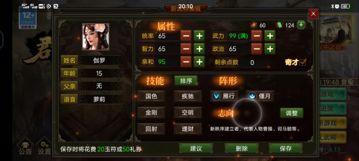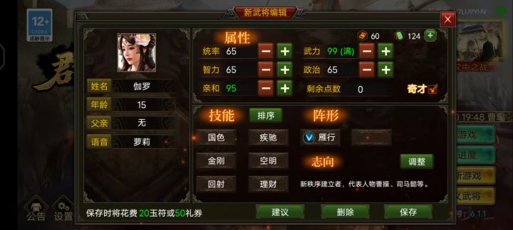 吐槽下架空乱斗属性各种不合理!龙狙英布的武力统帅。兵仙韩信95统帅?汉武帝99统帅😂。还有很多数据不合理的,就不说了,免得见解不同的来怼我。还有岳飞85的忠诚我99亲和排队磕一年都没有😢,想表现岳飞的精忠。为什么只给85忠!然后内政人员少得很一堆七十几的废将没几个有内政技能的,不过这影响不大,多做几年就是,只是很不合理