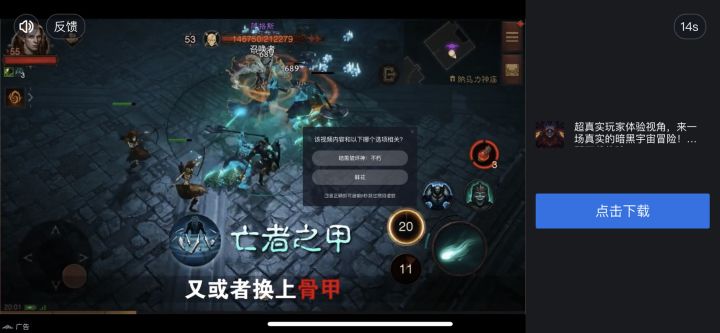 为什么会有这么恶心的功能存在?我不点,你就不计时?不点的话大不了正常30秒播放完结束好了,为什么要额外卡我时间?点击缩短时间应该是福利,不应该成为我的义务!而且这界面,比之前全屏的还要小,这样子卡着是等你点跳过还是点进去?暗黑一出来就扑街了,建议别接这游戏的广告了!三战都比这好