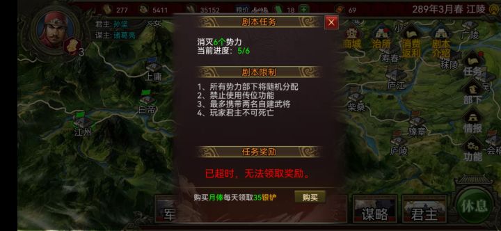 霸业剧本 王侯将相完成后提示奖励超时 是什么意思啊。图2是攻打最后一座城之前的存档。完成后提示君主有了一方天地,但是没有奖励😭😭我看活动时间也没停止啊