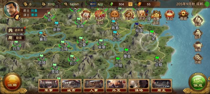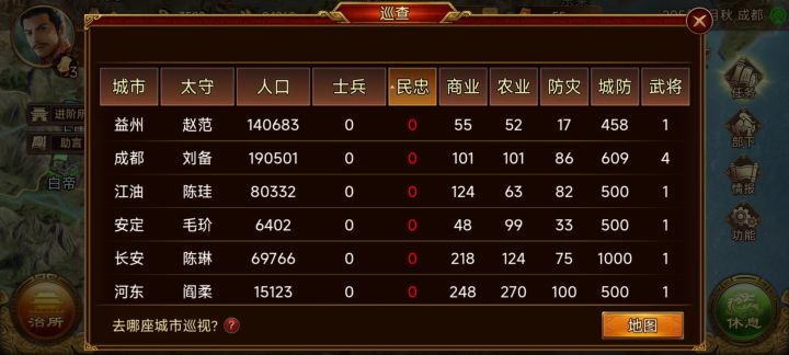 玩一局简单的,我发现了一些问题,当我占了半个地图的时候我觉得后面都是垃圾时间只需要一直推就行了,但民忠低0十几个城一直提示我要镇压爆民真的很烦,我没哪么多粮而且就几个政令征兵都得用完。一个月就能打#群雄时代 一个城或者两个城,可以平推我觉得没必要花时间来巡查,十几个城提上去一点他又开始降。我建议是能不能设置一个一键处理民忠的页面。到最后我想知道的是设置内政官对民忠有没有影响,我都是一个城就剩武将一