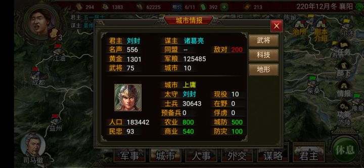 第一,在困难难度下,电脑的城防可以说达到了一个很恐怖的程度,即使可以围太守守的城骗其他城的人回援再偷别城,还是高的离谱,尤其在大地图看城市属性的时候城防值那么低,打的时候几千上万。相比较之下,玩家的城即使满城防,不点科技的情况下还是很低。难度强弱不应该体现在这个上面吧,以前玩电脑上的三国志,城防都是大家用一套的,该是多少就是多少,不会说这个城市是电脑防守就变成钢筋混凝土,打不动,玩家守就是纸糊的,