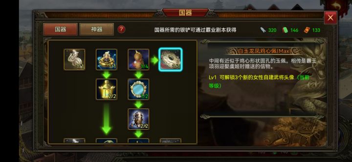 国器明明解锁了三名女性头像,进点将台却没有,还是说女将不充钱就不能解锁?如果是这样能不能帮我把这一项国器退了(ID:ZSMS5LE31),我不解锁这个功能了😂而且第三张图提示的国器金鹰冠饰也没有啊,文字bug?补充一条,国器里面的带罩铜灯,二级会显示成功率,然而和谋主的意见不一致啊,尤其和诸葛亮不一致,往往谋主说行真行,成功率高也不行,这一块是针对低智谋主出的功能嘛,可不可以一次性显示谋主是否支持呢,就不用一个一个挑人撞谋主的意见了