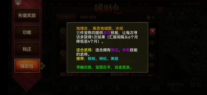 宝物组介绍这里,加一个适合哪个些武将。这对新手很有价值。