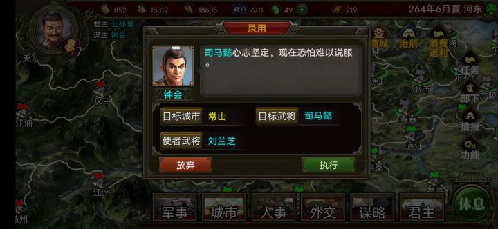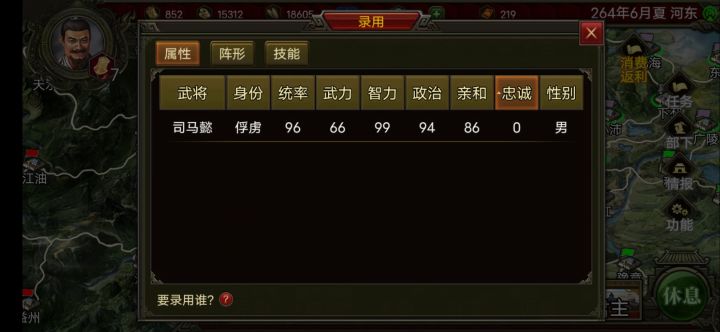 司马懿忠诚降为0了也不能录用,这是为什么?我换过其他武将去录用也不行,他儿子司马昭去都不能😂