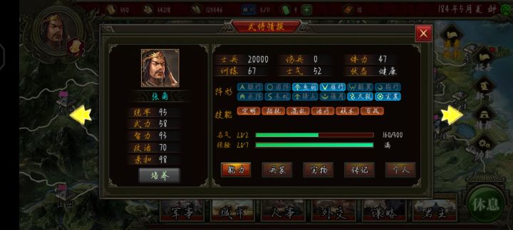 推荐剧本“大厦将倾·黄巾起义”张角技能妖术无法使用。培养界面显示张角除了妖术只有五个技能。