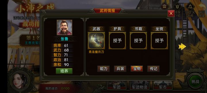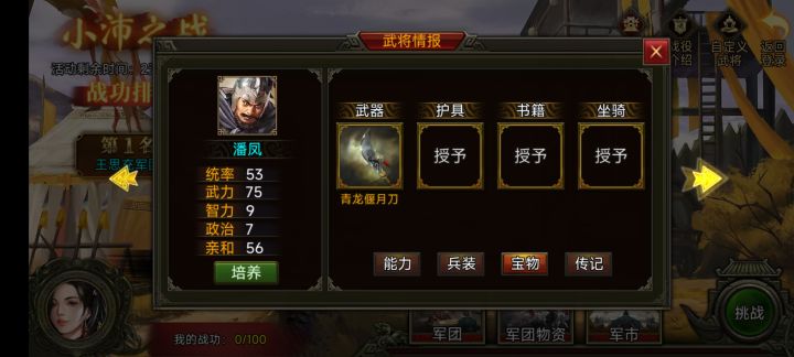 战役俩把青龙偃月刀,张飞升级有叱咤然后满体力放不出来