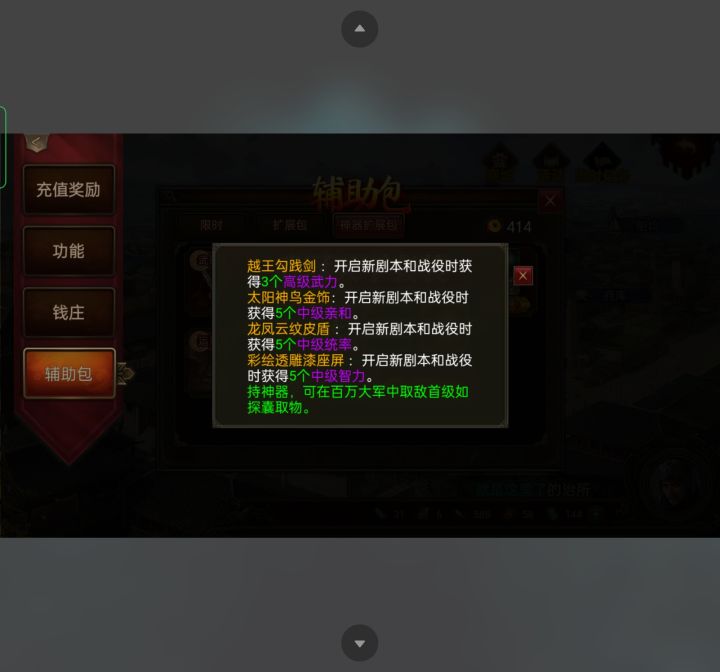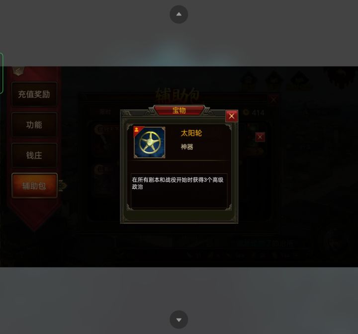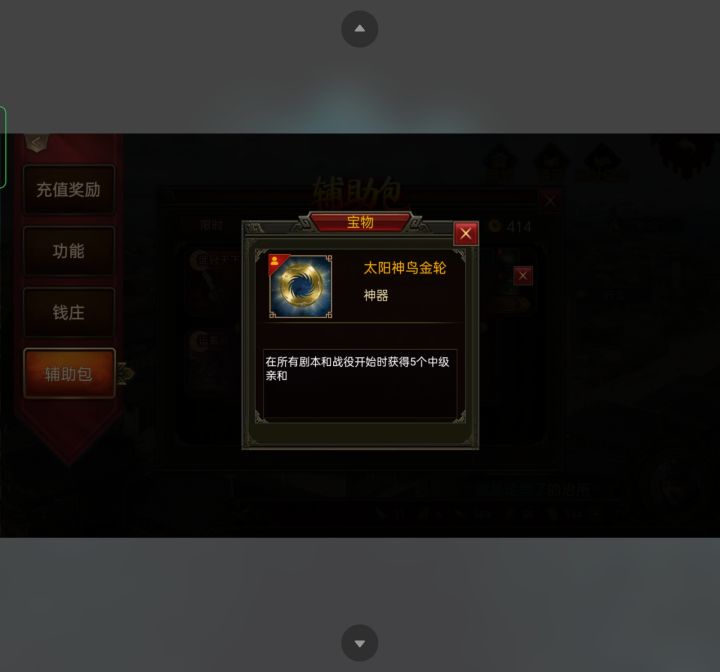 商城宝物神器扩展包,套装介绍与单件宝物介绍不一致。如题,武冠天下套装和神机妙算套装。武冠天下套装介绍,叫太阳神鸟金饰,给5个中级亲和。点开单件叫太阳轮,给三个高级政治。两者不符。神机妙算套装也有此不符问题。
